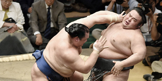 Takayasu (1-2) a été le premier des trois ôzeki à tomber, laissant la victoire au komusubi Mitakeumi (2-1). L’ozeki en difficulté a été déséquilibré lors de la première frappe de Mitakeumi qui l’a ensuite giflé alors qu’il tentait de charger et de retrouver sa position.