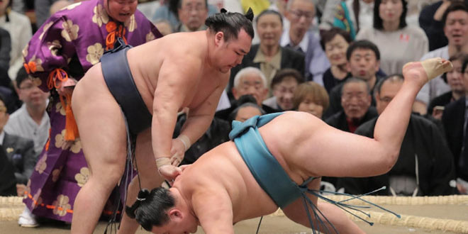 January’s champion Tochinoshin (2-1), fighting as a sekiwake for the first time since July 2016, came back from his first defeat on Monday to beat No. 3 maegashira Kotoshogiku (1-2).