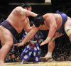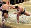 Hakuhô qui affrontait pour la onzième fois Okinoumi n’a pas rencontré d’obstacle majeur et a même pris rapidement le dessus sans que son opposant ne puisse s’agripper à son mawashi. Pour rappel, le yokozuna n’a jamais perdu contre Okinoumi.