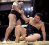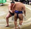 Kotoôshû affrontait son compatriote bulgare Aoiyama dans un duel 100% européen. Si hier Aoiyama est sorti du dohyô en boitant on pouvait émettre quelques réserves sur ses capacités à bien combattre aujourd’hui. Le sekiwake Kotoôshû lui même pas tout à fait remis de ses blessures conservait ses chances et c’est ce qui s’est passé portant son score à deux victoires.