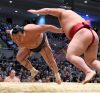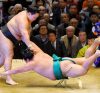 Yokozuna Hakuho, sumo’s all-time leader with 35 grand tournament titles on his resume, surrendered a belt hold to Takayasu (0-3) but was in no trouble as he improved to 2-1 after an opening-day upset. Despite his nominal disadvantage, Hakuho plowed forward and drove the No. 1 maegashira from the ring with a minimum of fuss.
