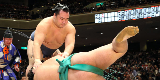 Kisenosato, qui comme Kakuryu reprend la compétition après s’être retiré des quatre dernières rencontres en raison de blessures, a semblé désemparé face à Ichinojo. Le yokozuna japonais était incapable de prendre le dessus sur le lutteur le plus lourd de la division avant d’être repoussé vers les ballots de paille.