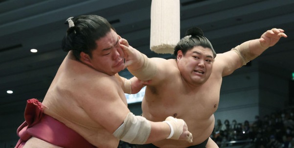 Les deux lutteurs au rang maegashira 8, Takayasu et Onosho, se sont améliorés à 3 victoires ; Onosho, originaire du nord du Japon, s’est senti chez lui pendant une vague de froid à Osaka.