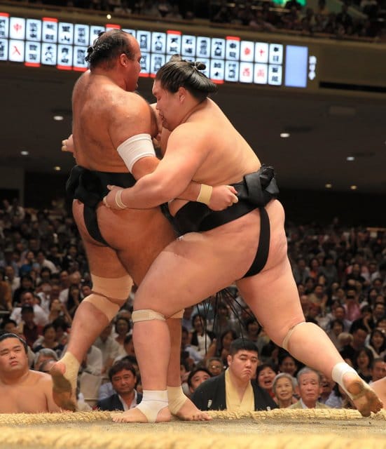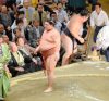 Kotoshogiku et Goeido sont les deux ôzeki à subir une défaite face à leur adversaire respectif.