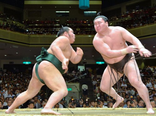Mauvaise journée pour les ôzeki, ni Kotoshogiku qui Kisenosato ne sont parvenus à remporter leur combat. Le premier a perdu contre un Aminishiki décidément très en forme alors que le second s’est incliné face au maegashira Aoiyama. Notez au passage que le bulgare signe aujourd’hui sa première victoire. Les autres lutteurs toujours invaincus  du tournoi en plus de Aminishiki sont Jokoryu, Takayasu et Kitataiki.
