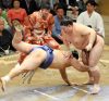 Les deux sekiwake ont remporté chacun leur match qui les opposaient aux komusubi, Gôeidô à battu rapidement Chiyootori tant dis que Tochiozan a expulsé du cercle Yoshikaze.