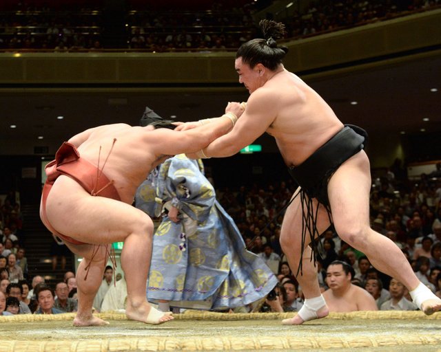 Kisenosato (3-1) est sorti victorieux dans un bras de fer épique avec Terunofuji (1-3) lors de leur toute première rencontre. L’ôzeki a dû aller chercher au plus profond de lui-même pour forcer son opposant à sortir du dohyô. Un très beau combat qui démontre une nouvelle fois que Terunofuji fait bien partie des nouveaux talents du sumo.