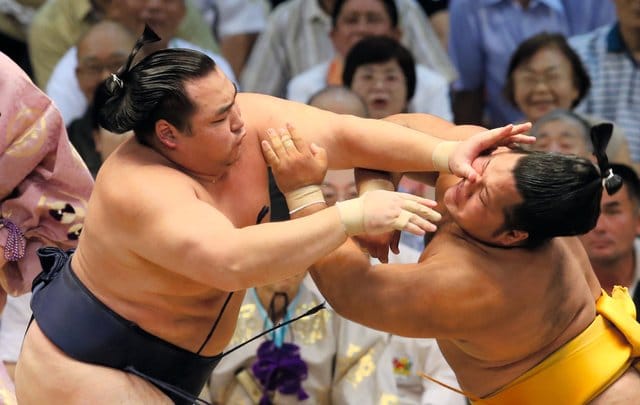 Les deux autres yokozuna n’ont pas eu ce genre de problème, bien au contraire! Kakuryu (4-0) a baladé de part en part du dohyo Shôhôzan (0-4) avant de lui porter le coup de grâce.