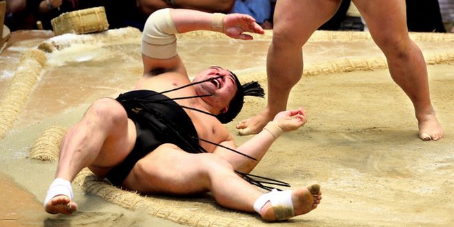 Les deux autres yokozuna n’ont pas eu ce genre de problème, bien au contraire! Kakuryu (4-0) a baladé de part en part du dohyo Shôhôzan (0-4) avant de lui porter le coup de grâce.