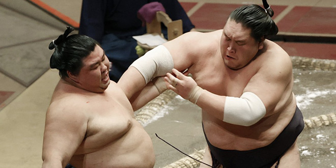 No. 3 Myogiryu, No. 5 Kiribayama and No. 11 Chiyotairyu all dropped to 3-1 to forfeit their share of the lead.