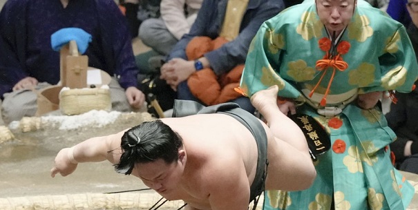 Le M15 Onosato, originaire de la préfecture d’Ishikawa, durement touchée par un tremblement de terre le jour du Nouvel An, a catégoriquement éliminé au bulldozer son compatriote débutant en makuuchi, le M17 Shimazuumi, le poussant dans sa première défaite.