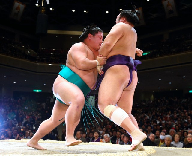 Kisenosato was the only casualty in the upper ranks as all three of the other ozeki posted victories.