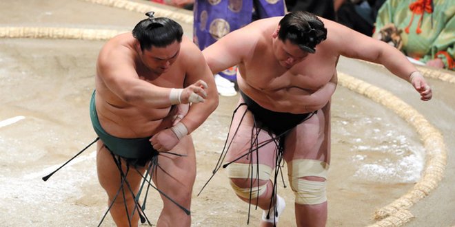Okinoumi’s win on Wednesday prompted an inquiry from the judges, who felt the Hakkaku stable wrestler may have stepped out of the ring first as he fell over with Terunofuji. In the end, however, Okinoumi was declared the winner by sakatottari as the referee initially ruled.