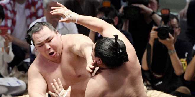 The champion here last year, Mitakeumi was the aggressor from the outset, shoving and ramming Shodai over the edge. The win gave him an 8-7 record in their career head-to-head clashes.