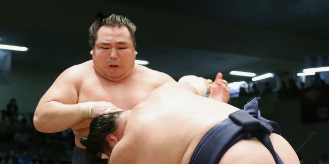 Sekiwake Mitakeumi (4-0) remains the only other undefeated wrestler here after quickly dispatching komusubi Tamawashi (1-3). Mitakeumi improved to 12-2 over the Mongolian, who is aiming for another promotion since losing his sekiwake status after going 9-6 at the New Year meet.