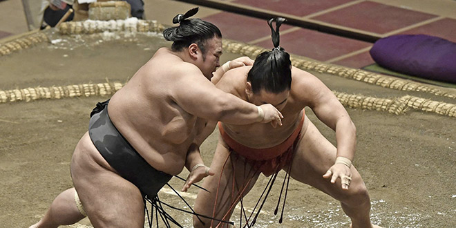 Le favori au titre Terunofuji continue d’enchaîner les victoires, tandis que l’ôzeki Takakeisho, en difficulté, a finalement remporté sa première victoire.