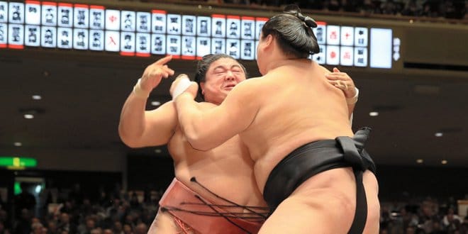 In other bouts, Kotoshogiku chased out komusubi Okinoumi (1-3) for a third win, while fellow ozeki Goeido improved to 2-2 after ringside judges correctly overturned the referee’s decision was awarded him victory in his bout against Ichinojo.