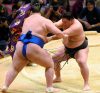 Kotoshogiku connait sa seconde défaite consécutive en se faisant battre par Ikioi, la veille il avait déjà perdu contre Takarafuji. Ikoi a utilisé la force brute pour venir à bout de son adversaire pourtant largement soutenu par le public, le komusubi décroche sa toute première victoire.