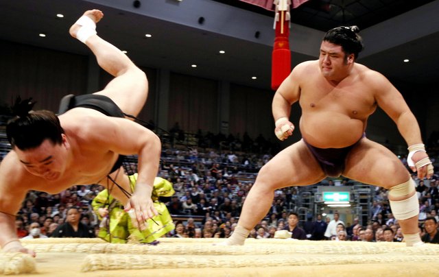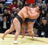 Les deux autres yokozuna restent invaincus, Hakuhô a battu Takarafuji facilement en le tirant vers le sol après l’avoir saisi par l’arrière du cou.