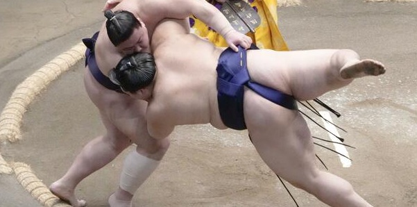 L’ôzeki Kotozakura a été contraint à l’abandon par Ichiyamamoto, qui a puisé dans ses ressources pour remporter sa première victoire. Ichiyamamoto évolue au meilleur classement de sa carrière, celui de maegashira 1.