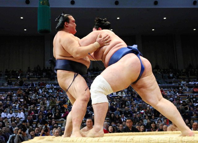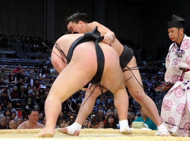 Plus que deux lutteurs en tête après les défaites du vétéran Kyokutenhô et de Okinoumi.