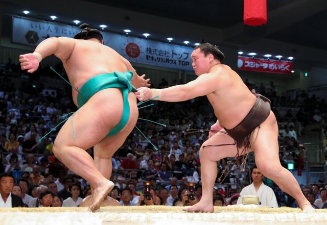Kotoshogiku a finalement décroché sa première victoire du tournoi en s’imposant face à l’ôzeki Terunofuji. Les deux hommes sont désormais à égalité avec un score de 1-4.