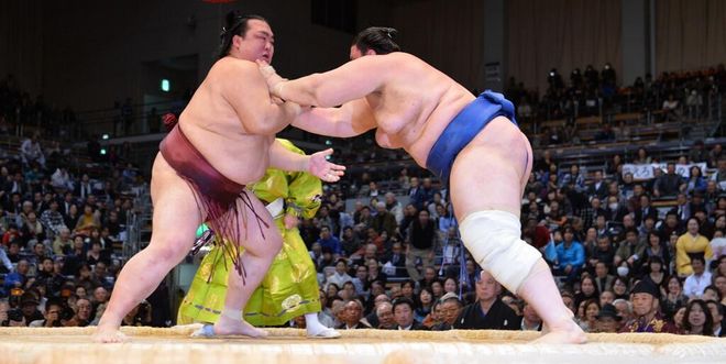 | Toyohibiki 豊響 隆太 (Maegashira 3) 2-3 | | | fumidashi 踏み出し | | | Kakuryû 鶴竜 力三郎 (ôzeki) 4-1 |