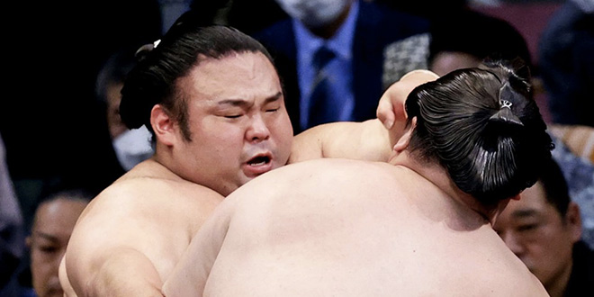 Le favori local Meisei (2-3) a de nouveau eu la foule derrière lui lors de sa victoire unilatérale sur Shodai (2-3). L’ancien sekiwake originaire de la préfecture de Kagoshima à Kyushu a commencé avec une forte charge et a rapidement éliminé l’ôzeki, qui a besoin de huit victoires lors de la rencontre pour conserver son rang.