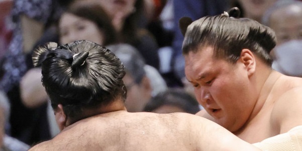 L’ôzeki Takakeishô, menacé de rétrogradation, a remporté une grande victoire après avoir expulsé un autre lutteur trapu, Ura, le pied du maegashira 4 étant déjà hors du ring alors qu’il tentait une prise tardive. Takakeishô a besoin de huit victoires sur les 15 jours de compétition pour rester à son rang après son retrait en mai.
