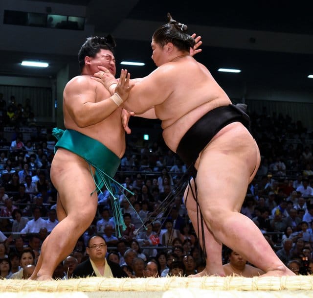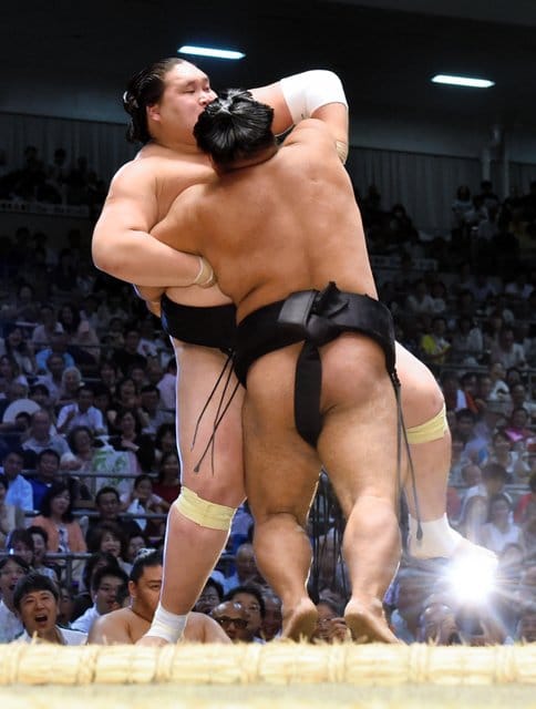 Terunofuji, qui risque de perdre son rang en septembre, a été ralenti dans sa quête aux huit victoires nécessaires en subissant sa première défaite contre Shohozan. Face à un adversaire avec les deux genoux en mauvais états, le maegashira 4 a continué de glisser sur le côté forçant Terunofuji à pivoter.