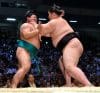 Kotoshogiku a obtenu sa première victoire du tournoi en fonçant tout droit sur Mitakeumi. Le jeune maegashira 1 s’est retrouvé démuni face à l’ôzeki qui a vite pris l’avantage du combat.