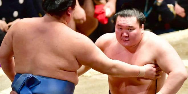 Takakeisho quant à lui, vainqueur du tournoi de Novembre, est tombé contre l’expérimenté Tochiozan qui n’a pas fait de détail et l’a sorti du dohyô : après un début de combat équilibré, Tochiozan a réussi a prendre solidement le mawashi de son adversaire, alors que Takakeisho ne pouvait assurer un prise ferme. Ce dernier essayait alors une prise au bras pour éjecter son adversaire, mais c’est Tochiozan qui le contrait et le poussait finalement dans le dos sans résistance.