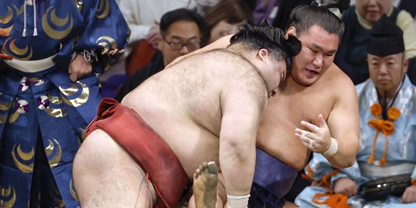 L’ancien ôzeki Takayasu continue d’être une épine dans le pied de l’ôzeki actuel Hoshoryu ; il a infligé aujourd’hui au coleader d’hier sa première défaite au Kyushu Bashô.