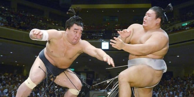 Le yokozuna Harumafuji reste fermement à la recherche d’un deuxième championnat consécutif en s’emparant de la victoire face à son compatriote mongol Takanoiwa. Avec un score de 5-1, Harumafuji est à égalité avec Endo et Kyokushuho.