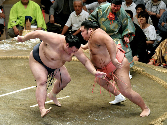 Kakuryu continue d’être le plus impressionnant des trois yokozuna avec sa victoire contre le komusubi Tamawashi (0-6).