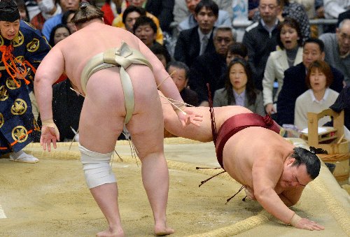 Le bulgare Kotoôshû était porté absent aujourd’hui offrant ainsi sur un plateau d’argent une victoire par forfait à Myogiryu. Kotoôshû souffre d’une blessure au tendon du coude gauche, il est arrêté pour au moins 10 jours ce qui signifie qu’il sera kadoban au prochain tournoi de Tokyo en mai. Ça sera son 6ème kadoban depuis qu’il est ôzeki et la 7ème fois qu’il est forcé d’interrompre un bashô. Il faut dire que son bras gauche est depuis longtemps son point faible…