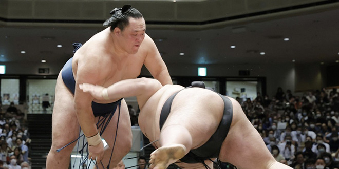 Hokutofuji est également resté parfait après un combat mouvementé avec le numéro 10 Nishikifuji (4-2). Après un violent choque initial, Hokutofuji a continué à charger et a chassé son adversaire du dohyo.