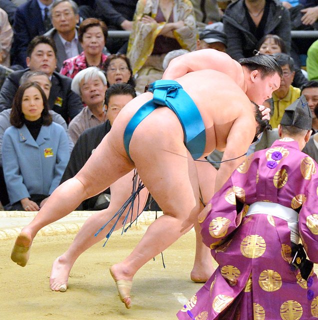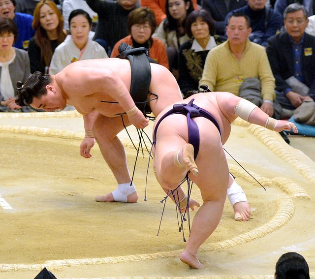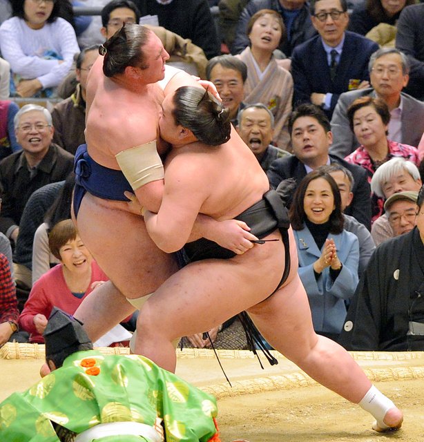 At the ozeki rank, Goeido (5-2) saw off big man Ichinojo (4-3) after circling and moving into position for a yorikiri frontal force out to snap a two-day losing skid in his first tournament at home since his promotion to sumo’s second-highest rank.