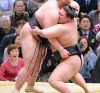 Kotoshogiku (5-2) bulldozed winless Takayasu in a lopsided encounter, tackling his opponent over the ridge to also snap a two-day losing streak, while Kisenosato (4-3) hoisted out Bulgarian Aoiyama (1-6) after holding off his opponent’s thrusting attack.