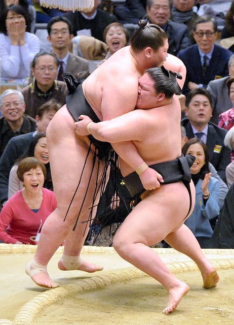OSAKA (Kyodo) — Undefeated yokozuna Hakuho cast away another would-be challenger in the form of Tamawashi to remain hot in pursuit of his sixth consecutive championship as the first week of the Spring Grand Sumo Tournament wrapped up on Saturday.