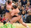 Son grand rival Harumafuji qui est à la recherche d’un nouveau titre depuis sept tournois a littéralement plongé sur Takekaze pour l’évincer de la zone de combat mais non sans risque puisque le yokozuna a bien failli perdre à son propre jeu. Avec Toyonoshima, Harumafuji conserve la seconde position avec seulement une défaite.