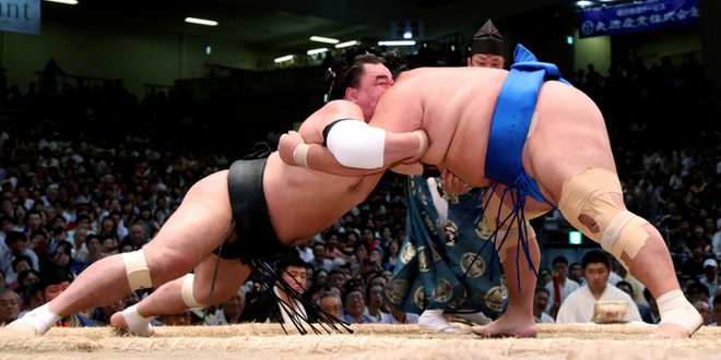 L’autre yokozuna restant Harumafuji (5-2) a eu du fil à retordre face au komusubi Kotoshogiku (2-5).