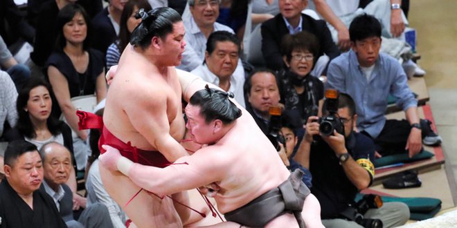 Hakuho a fait irruption sur Daieisho au moment de la charge, celui-ci n’a offert que peu de résistance au grand champion. Le maegashira 3 continue sa série de défaites après s’être fait sortir de l’anneau en à peine 3 secondes.