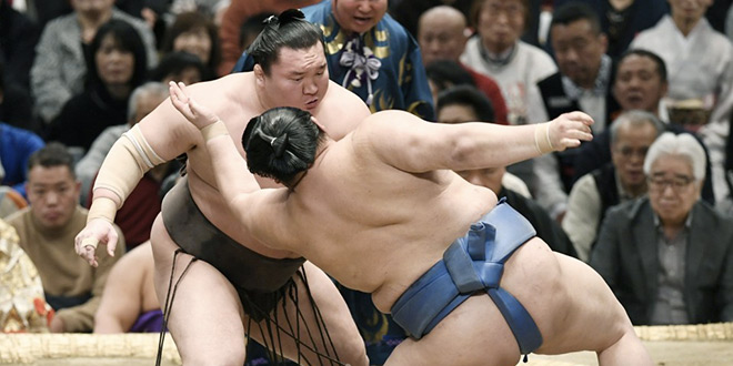 Le sekiwake Tamawashi, vainqueur du grand tournoi de janvier, a amélioré à 4-3 son score en battant le Brésilien Kaisei (0-7).