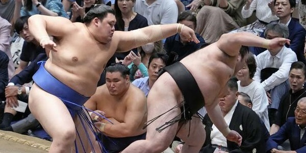 Le komusubi ukrainien Aonishiki a fait preuve d’une force et d’un jeu de jambes impressionnants pour remporter une victoire par oshidashi face au sekiwake Wakatakakage, ce qui laisse la course à la promotion au rang d’ôzeki du natif de la préfecture de Fukushima sur le fil du rasoir. Wakatakakage a abordé la compétition avec 11 victoires à son actif pour atteindre le seuil de promotion habituel de 33 victoires en trois tournois en tant que komusubi ou sekiwake et ne peut probablement se permettre qu’une seule défaite supplémentaire au cours des huit jours restants.
