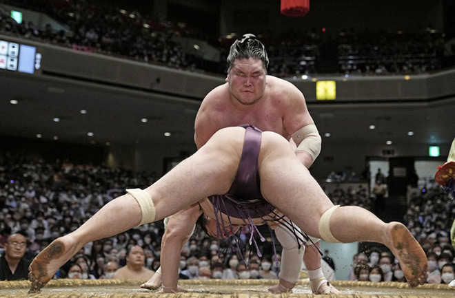L’ôzeki Shodai a chuté à un misérable 1-6 avec une défaite contre le n ° 3 Hokutofuji (2-5). L’ancien komusubi Hokutofuji a utilisé de solides poussées au cou et à l’aisselle du malheureux ozeki avant de le chasser.