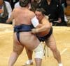 Hakuho est passé à un cheveu de la défaite lors de son affrontement contre le maegashira 2 Okinoumi qui n’a pas manqué de courage pour essayer d’infliger une première défaite au yokozuna dans l’avant dernier combat du jour.