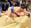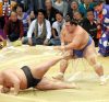 Chasing a record 35th Emperor’s Cup, Hakuho improved to 7-0, one win clear of a group of six wrestlers including fellow yokozuna Harumafuji.