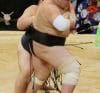 Terunofuji, clearly struggling with a heavily taped right leg, dropped to 4-3 and was no real match for No. 4 maegashira Ikioi, who stayed in touch with leader Hakuho at 6-1.