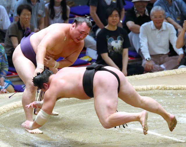Les trois yokozuna ont remporté leur combat respectif. Hakuhô n’a mis qu’un instant avant que le komusubi Aoiyama ne se retrouve gisant au sol. Harumafuji n’a fait qu’une bouchée de Kaisei, le brésilien reste sur un score nul en nombre de victoires! Kakuryû a vaincu le komusubi Aminishiki par tsukidashi.